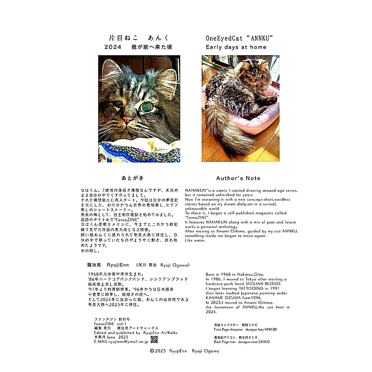 夢日記から生まれたセリフ無しの短編漫画「なはくん夢日記漫遊戯画」を中心に、タトゥーフラッシュ、フォト、コラムなど幻想と現実がゆるやかに混ざり合うオールカラー私家版ZINEです。