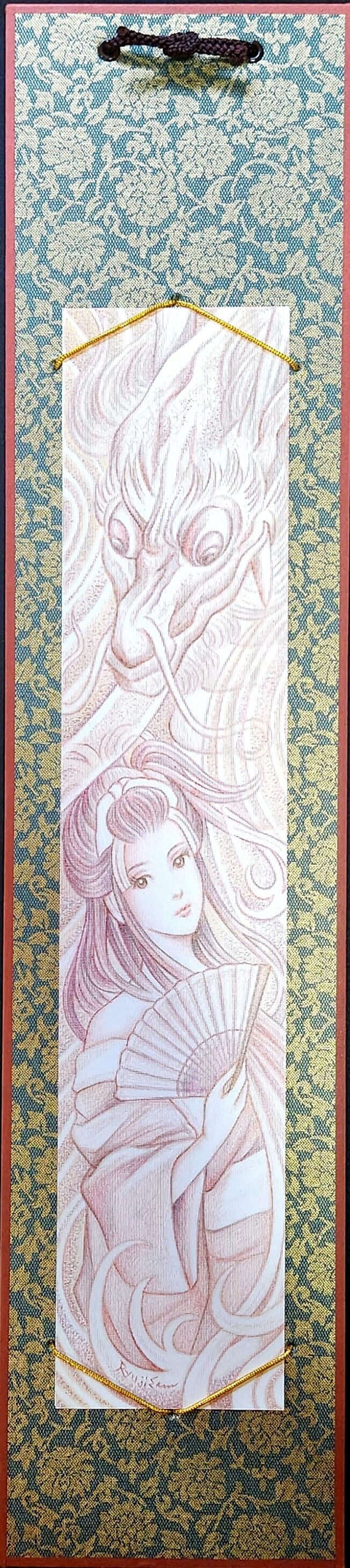 ミヲビ MIWOBI 001 龍治苑オリジナル原画です。 鉛筆 色鉛筆 175mmx365mm 短冊大サイズ