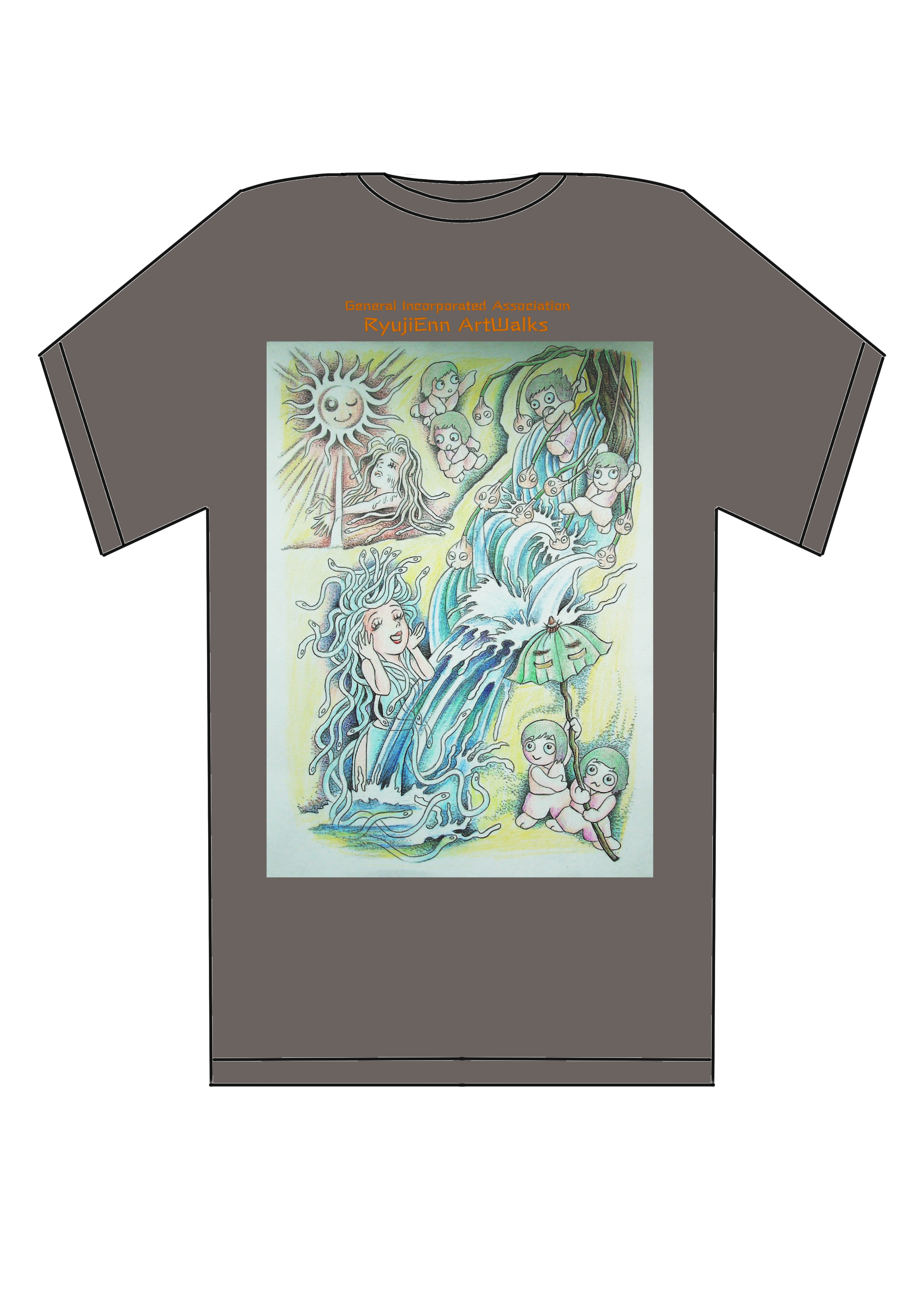 画を大きめ、中心に配置したアートTシャツ。ダボっとゆったり着るイメージです。