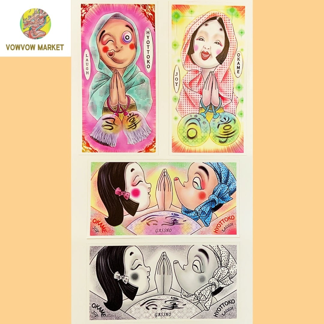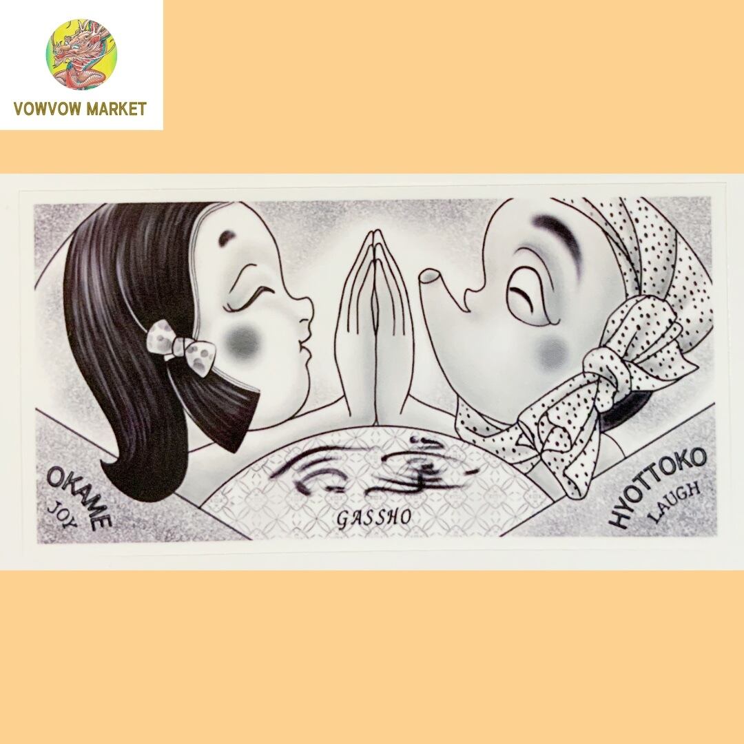 合掌シール おかめ ひょっとこ Gassho sticker OKAME HYOTTOKO