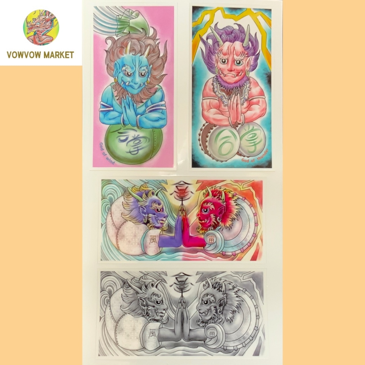 合掌シール 風神雷神 Gassho sticker FUJIN RAIJIN